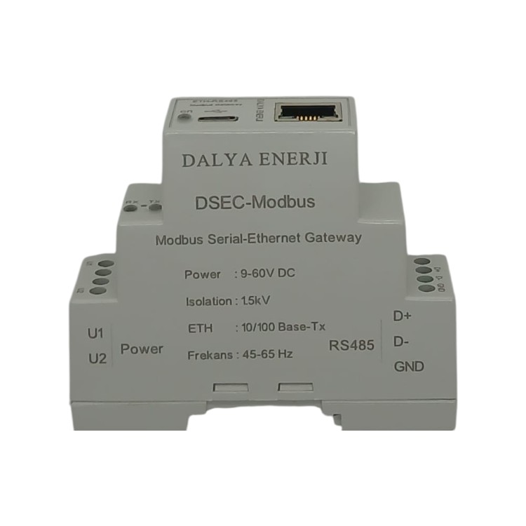 DALYA DSEC-Modbus Gateway, Ethernet ve RS485 arayüzleri arasında Modbus protokol dönüşümü sağlayan %100 yerli üretim bir çözümdür. Endüstriyel otomasyon, enerji izleme ve bina yönetim sistemleri için tasarlanmış olup Modbus TCP, RTU ve ASCII protokollerini destekler.