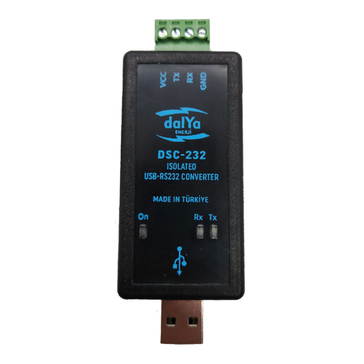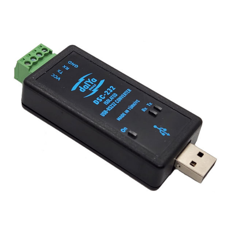 DALYA ENERJİ RS232 Serial Converter (DSC-232), USB arayüzünü RS232 standardına dönüştürerek bilgisayar ile seri port kullanan cihazlar arasında güvenilir ve hızlı haberleşme sağlar. Galvanik izolasyonu, LED göstergeleri ve USB üzerinden besleme özelliği ile pratik ve güvenli bir çözümdür.