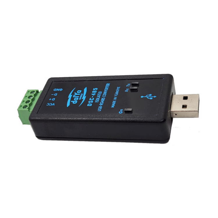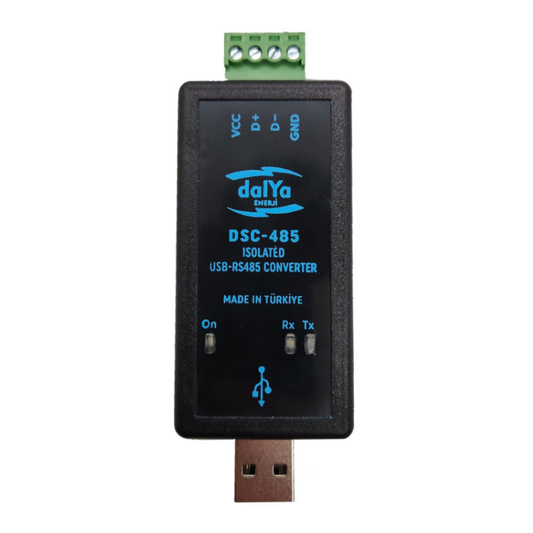 DALYA ENERJİ RS485 Serial Converter (DSC-485), USB arayüzünü RS485 standardına dönüştürerek bilgisayar ile endüstriyel cihazlar arasında güvenli ve hızlı haberleşme sağlar. Galvanik izolasyonu, LED göstergeleri ve USB üzerinden besleme özelliğiyle pratik ve güvenilir bir çözümdür.